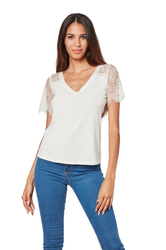 Unmatched Lace Sleeve Top
