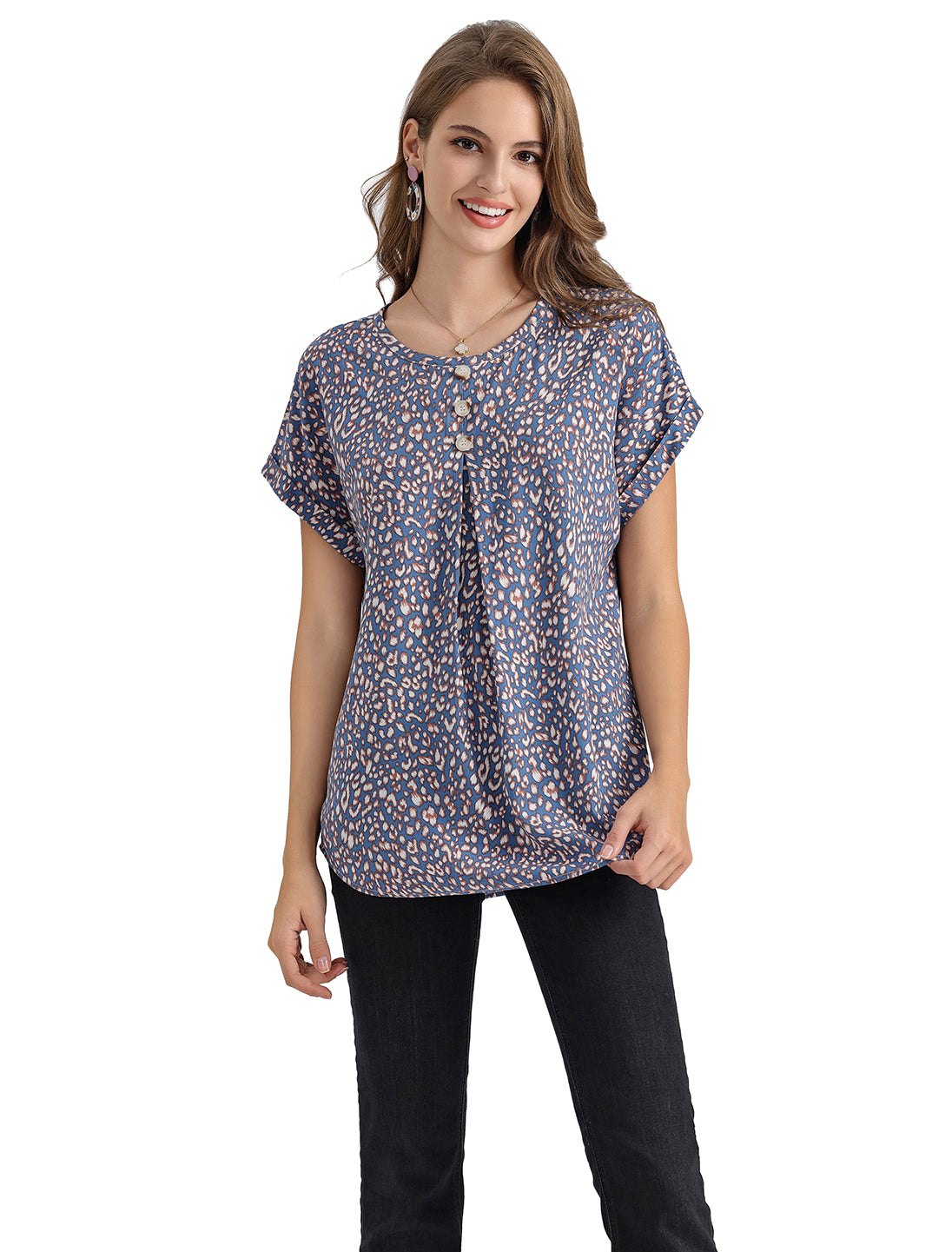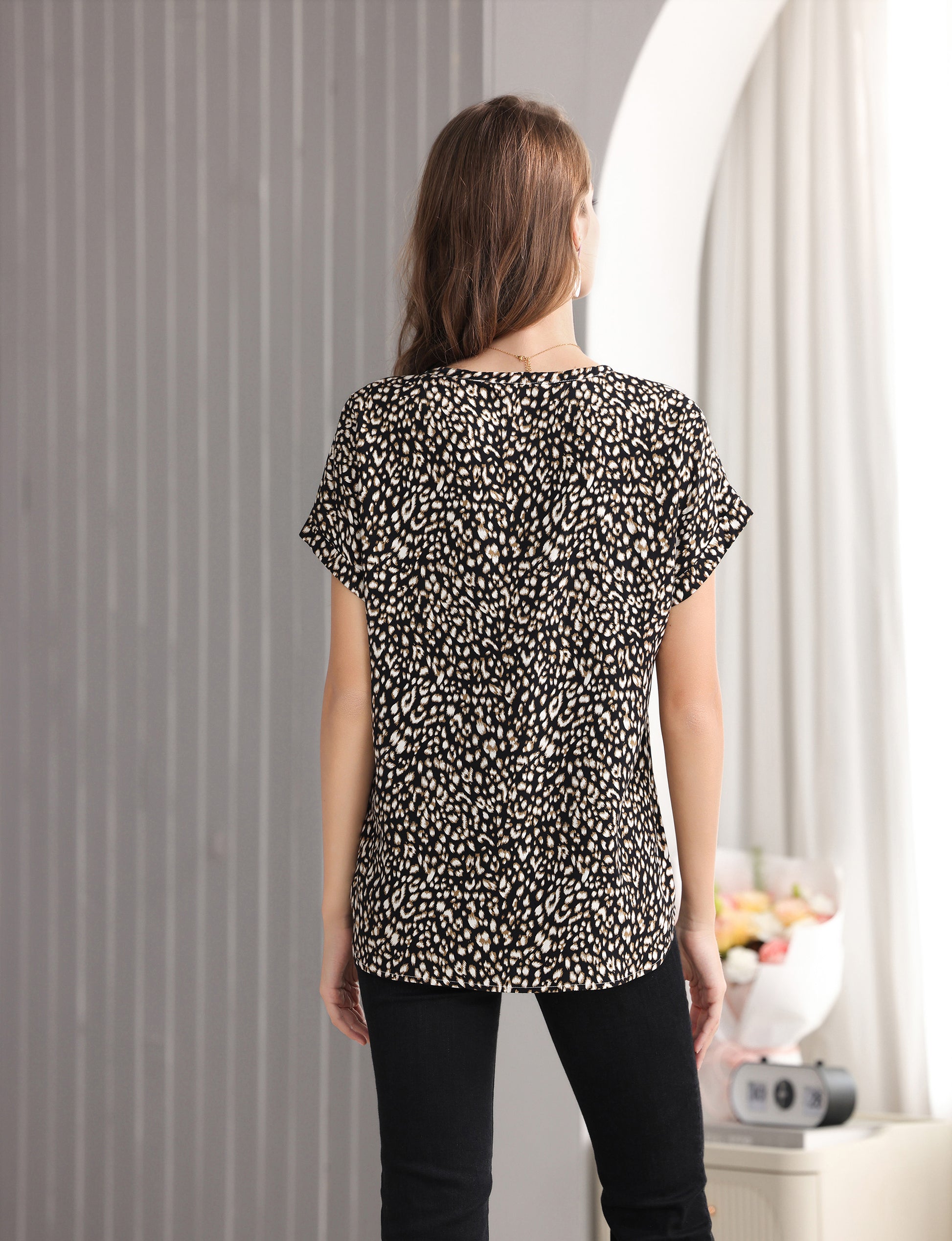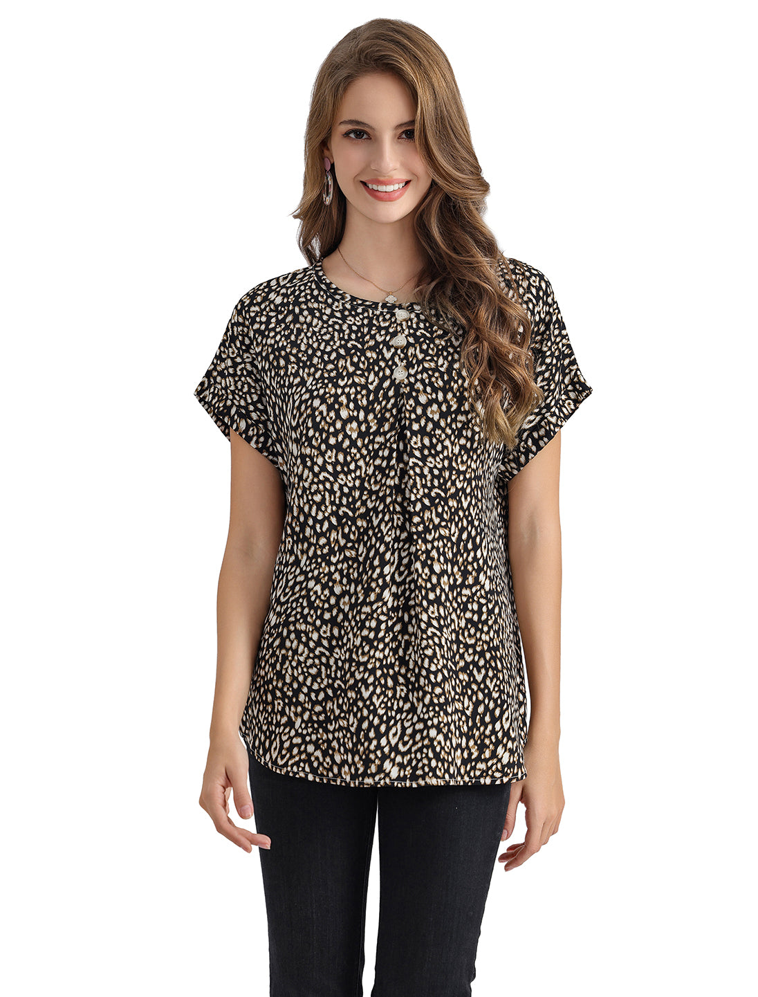 Women's Short-Sleeve Tunic Top with Distinctive Leopard Print