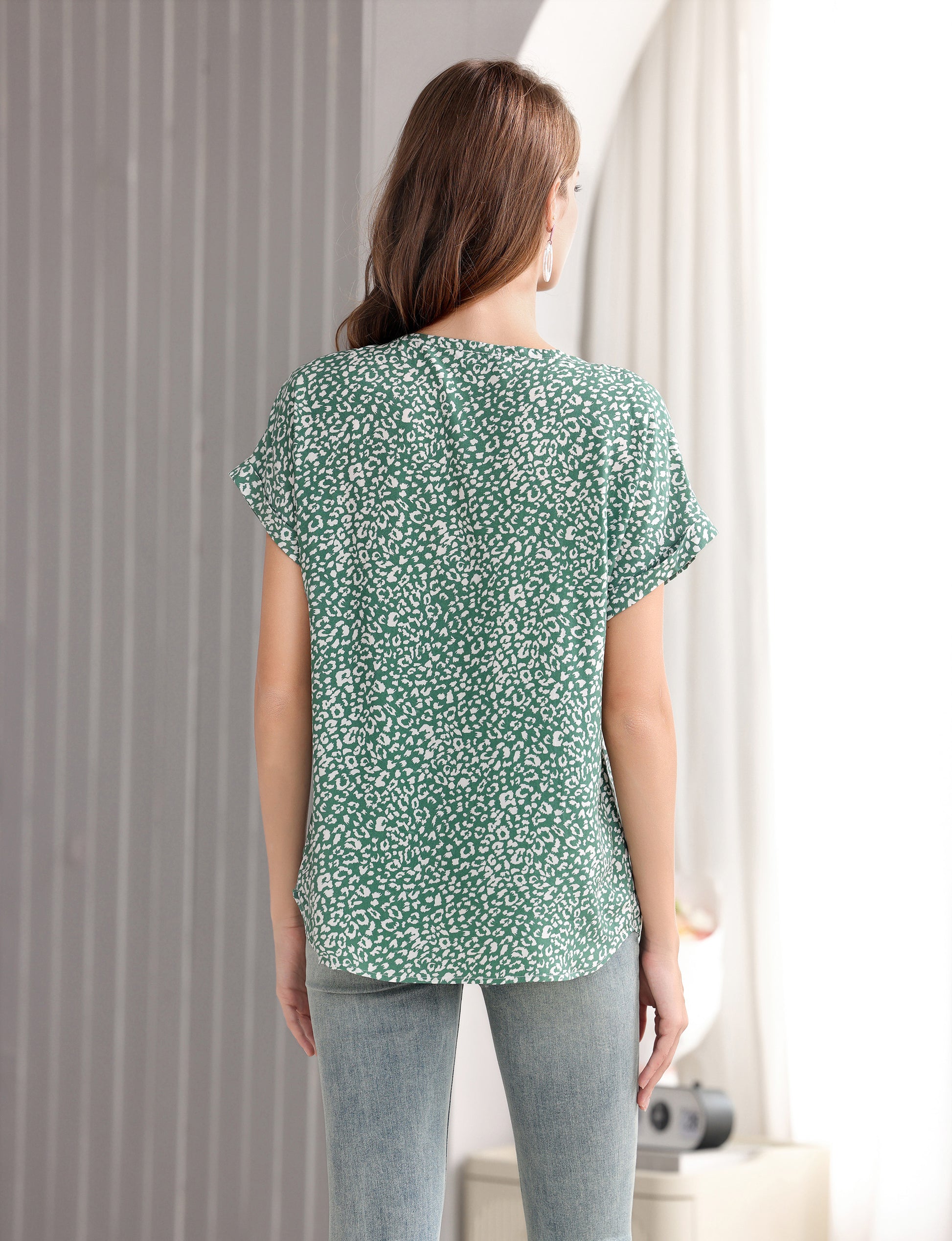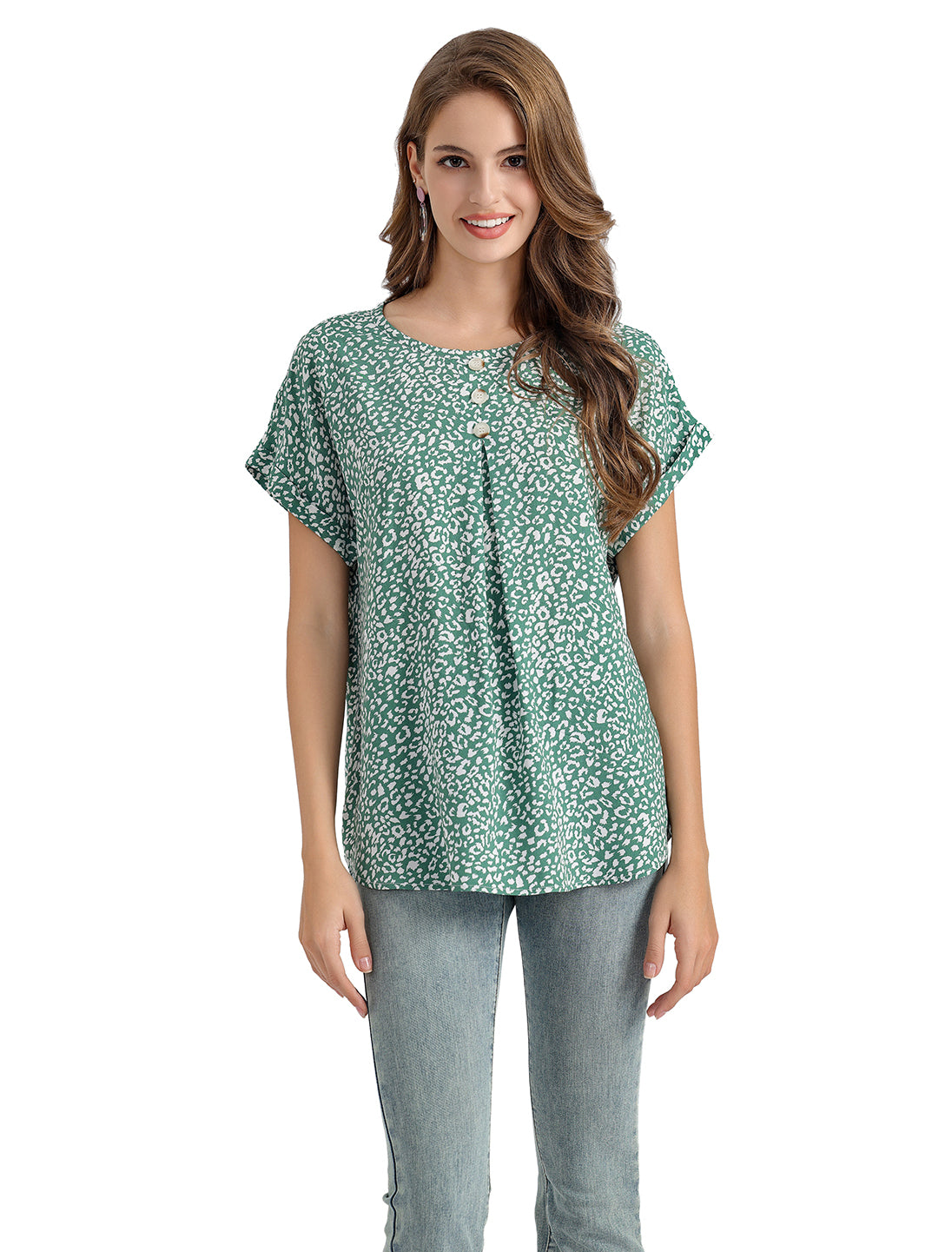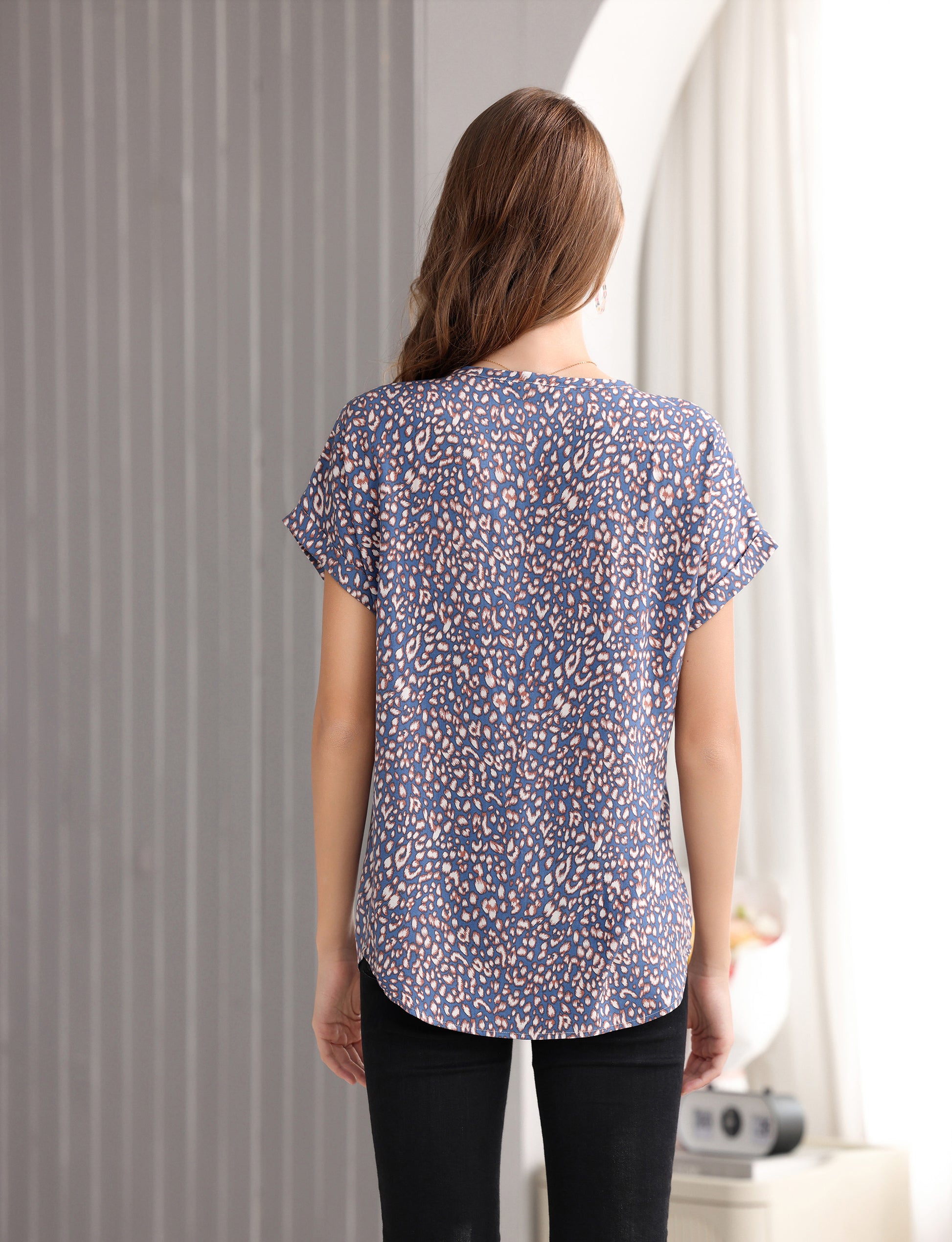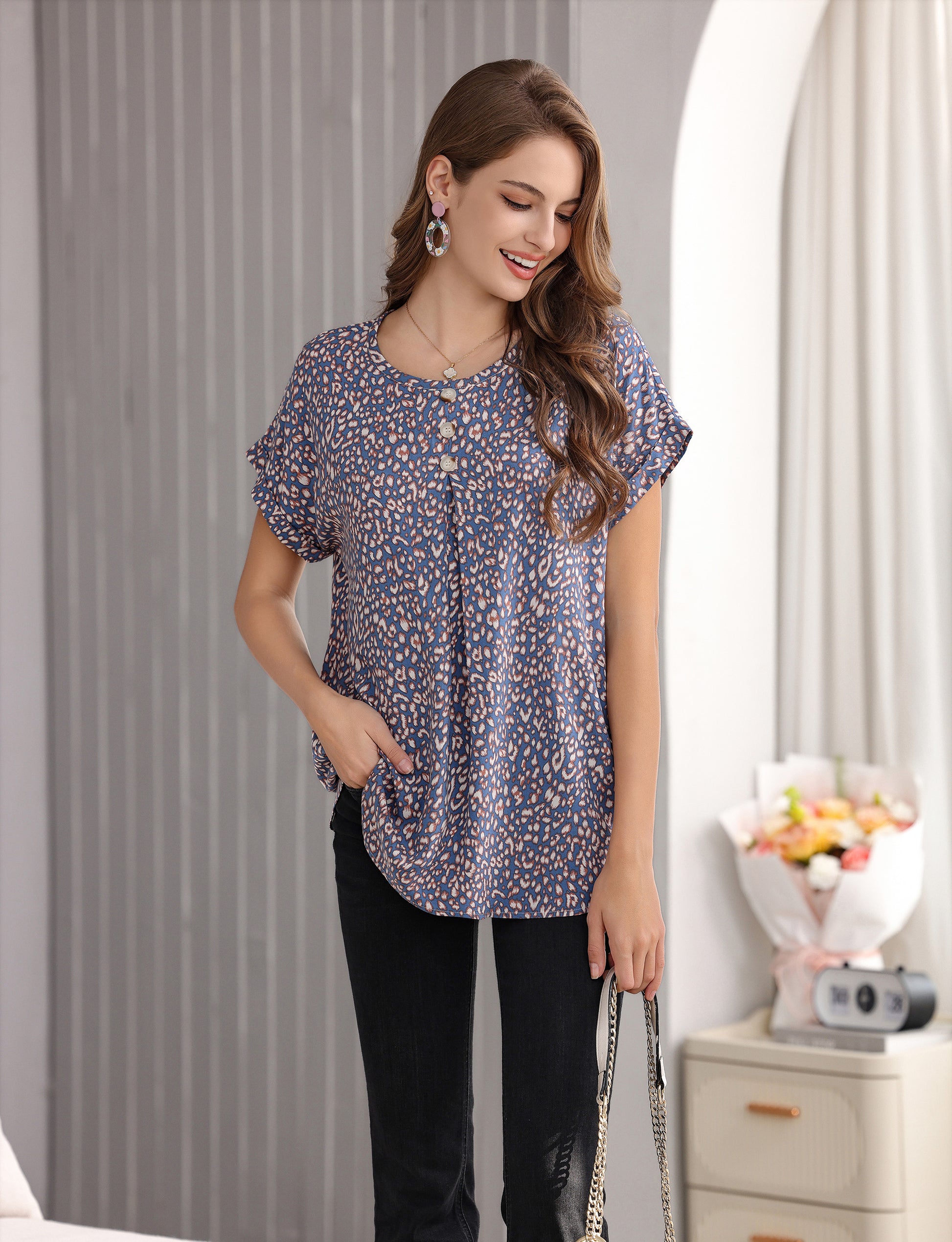 Women's Short-Sleeve Tunic Top with Distinctive Leopard Print